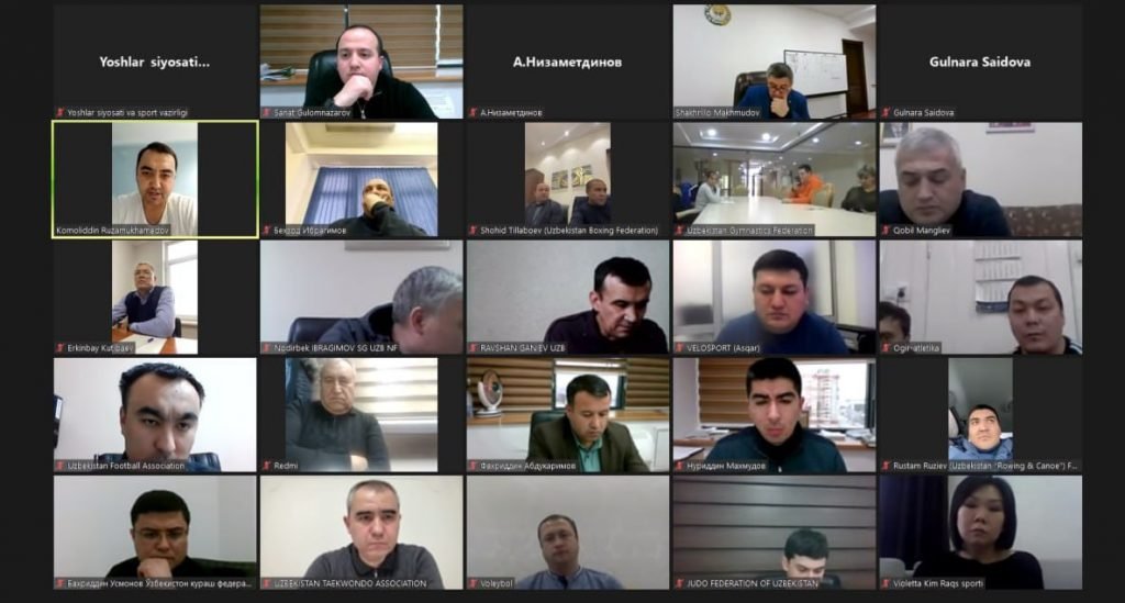 Yoshlar siyosati va sport vaziri o‘rinbosari Shahrullo Mahmudov hamda Milliy olimpiya qo‘mitasi raisi o‘rinbosari Sherzod Toshmatov federatsiyalar va assosiasiyalar bilan 2024-yilda Parijda bo‘lib o‘tadigan Olimpiya o‘yinlariga tayyorgarlik holatini muhokama qildi. Yig‘ilishda federatsiyalarning mas’ul mutasaddilari Zoom platformasi orqali onlayn tarzda ishtirok etishdi. Kun tartibiga muvofiq, birinchi navbatda, mamlakatimizda kuzatilgan anomal sovuqlar davrida terma jamoalarning mashg‘ulotlari uchun yaratilgan shart-sharoitlarni yanada yaxshilash masalasi ko‘rib chiqildi. Mutasaddilar tomonidan hozirda mamlakatimizda mashg‘ulot o‘tkazayotgan terma jamoalarning holati, sportchilarga berilayotgan ovqatlanish tartibini o‘rganish, binolardagi havo haroratini nazorat qilish bo‘yicha mas’ul xodimlarga tegishli topshiriqlar berildi. Shundan so‘ng joriy yilda o‘tkaziladigan kompleks musobaqalar, Osiyo va jahon chempionatlariga tayyorgarlik ko‘rish rejalari muhokama qilindi. Shu munosabat bilan har bir jamoa uchun tashkil etiladigan o‘quv-mashg‘ulot yig‘inlari, mahalliy va xalqaro musobaqalar rejasini yanada tahlil qilish bo‘yicha qo‘shimcha topshiriqlar berildi.
